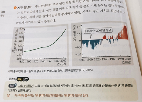 거기에는 지구온난화에서 지구가 흡수하는 에너지총량과 방출하는 에너지의 총량이 같다고 했는데