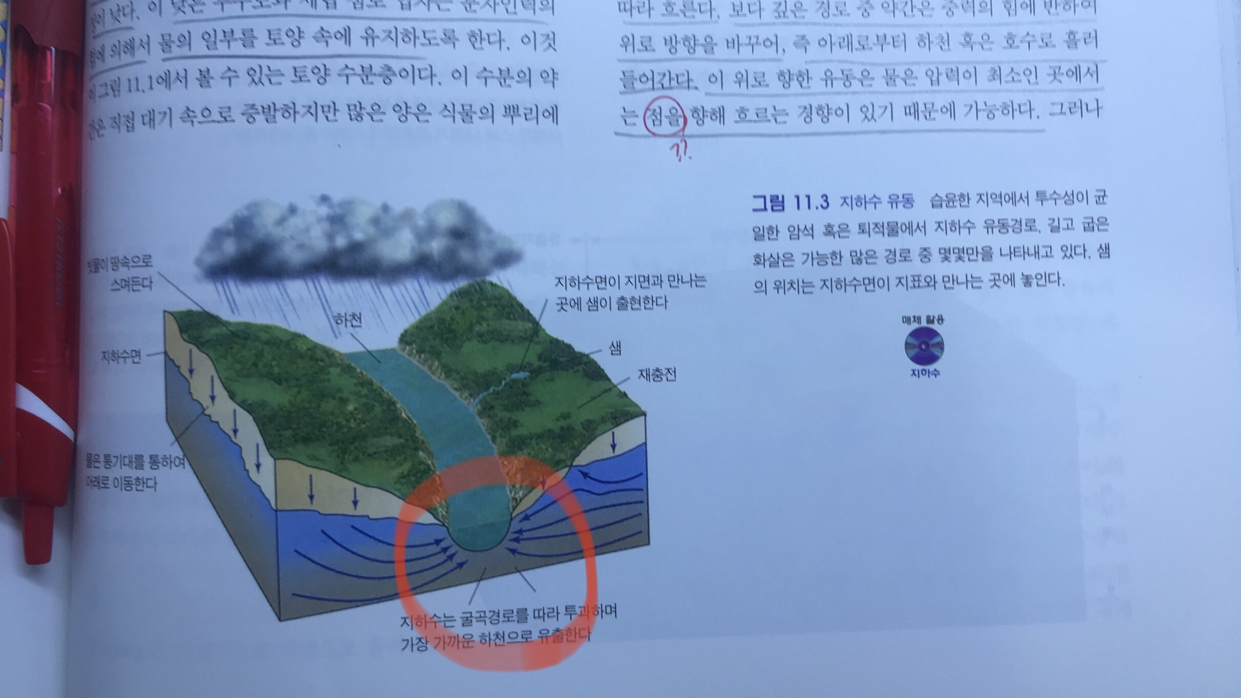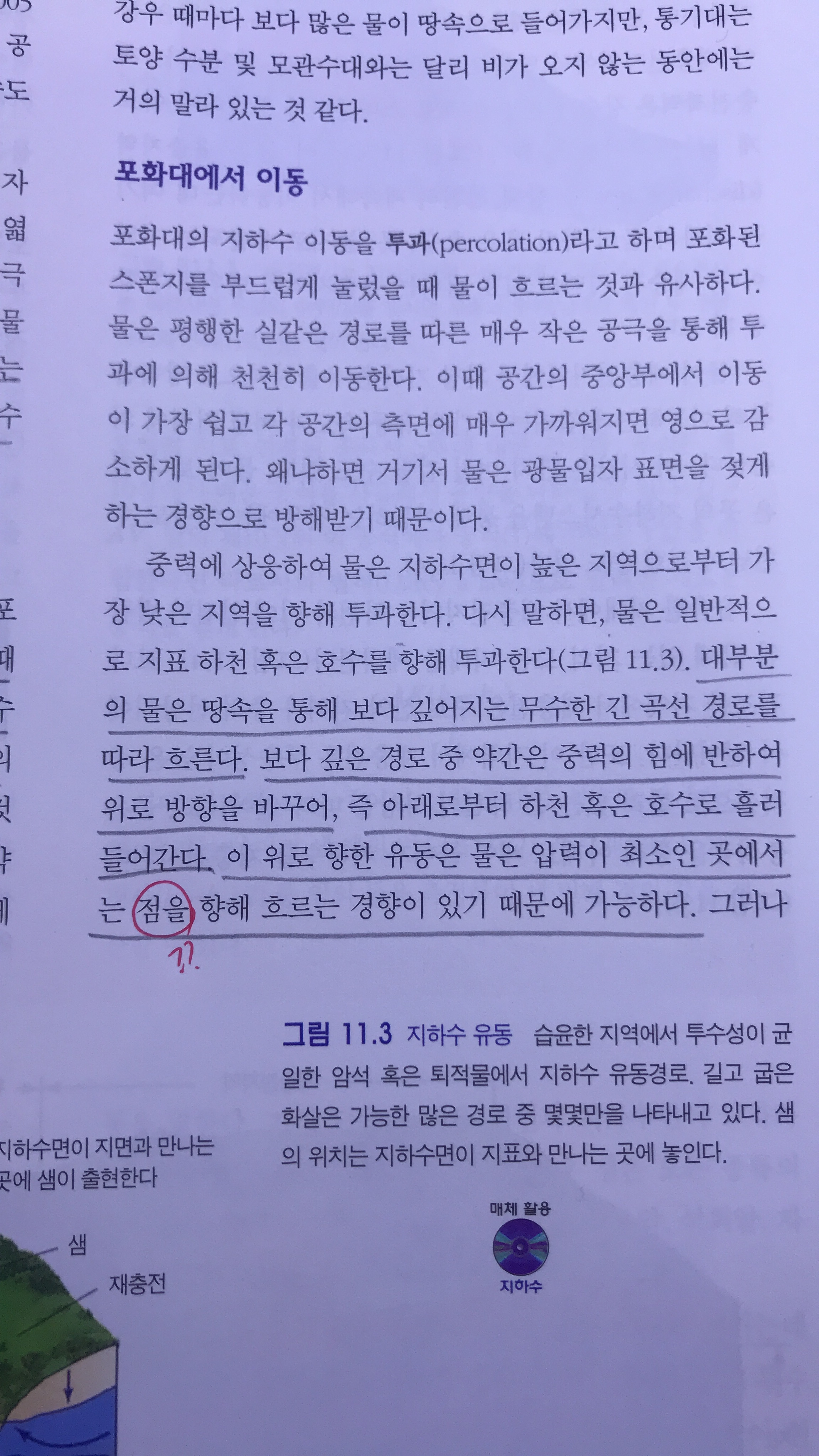 맨마지막줄에 보면 물은 압력이 최소인 곳에서는 점을 향해 흐르는 경향이 있다는데
