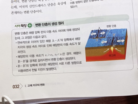 전 판운동이 확장극을 기준으로 일어나는 구면상 운동이고 확장극에서 멀 수록 확장속도가 빨라지므로(확장축을 지구자전축에 비유했을 때 적도에 해당하는 위치에서 가장 빠를 것 같습니다) 확장속도 차이로 인해 고체인 지면에서 변환단층이 발생한다고 이해했습니다 잘못 이해한 걸 수도 있어요이미지 확대