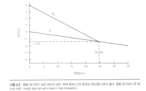 그다음 문장에서 ‘염분이 24.7에서 두 밀도가 교차할때까지 최대밀도의 온도도 증가한다’ 라고 나왔는데 여기서 두 밀도가 무엇을 의미하는지 알려주세요 그리고 그래프보면 최대밀도의 온도가 감소하는 것 아닌가용?