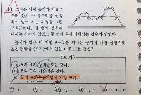 D에서는 온도가 높고 건조할텐데 이것과 포화수증기압이 어떤 연관이 있는지 모르겠습니다.