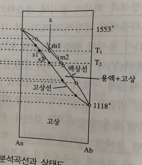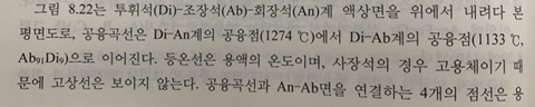 3성분계 투휘석, 조장석, 회장석의 액상면 평면도 설명을 보면 사장석의 경우 고용체이기 때문에 고상선이 보이지 않는다고 합니다.