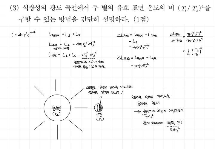 쌍성 부극소 광도 구하는 법이요...! 기출 풀이에는 가려지는 부분을 구로 계산하는데 저는 많이 쳐줘도 반구여야 할 것 같은데 왜 구로 계산하는걸까요...!