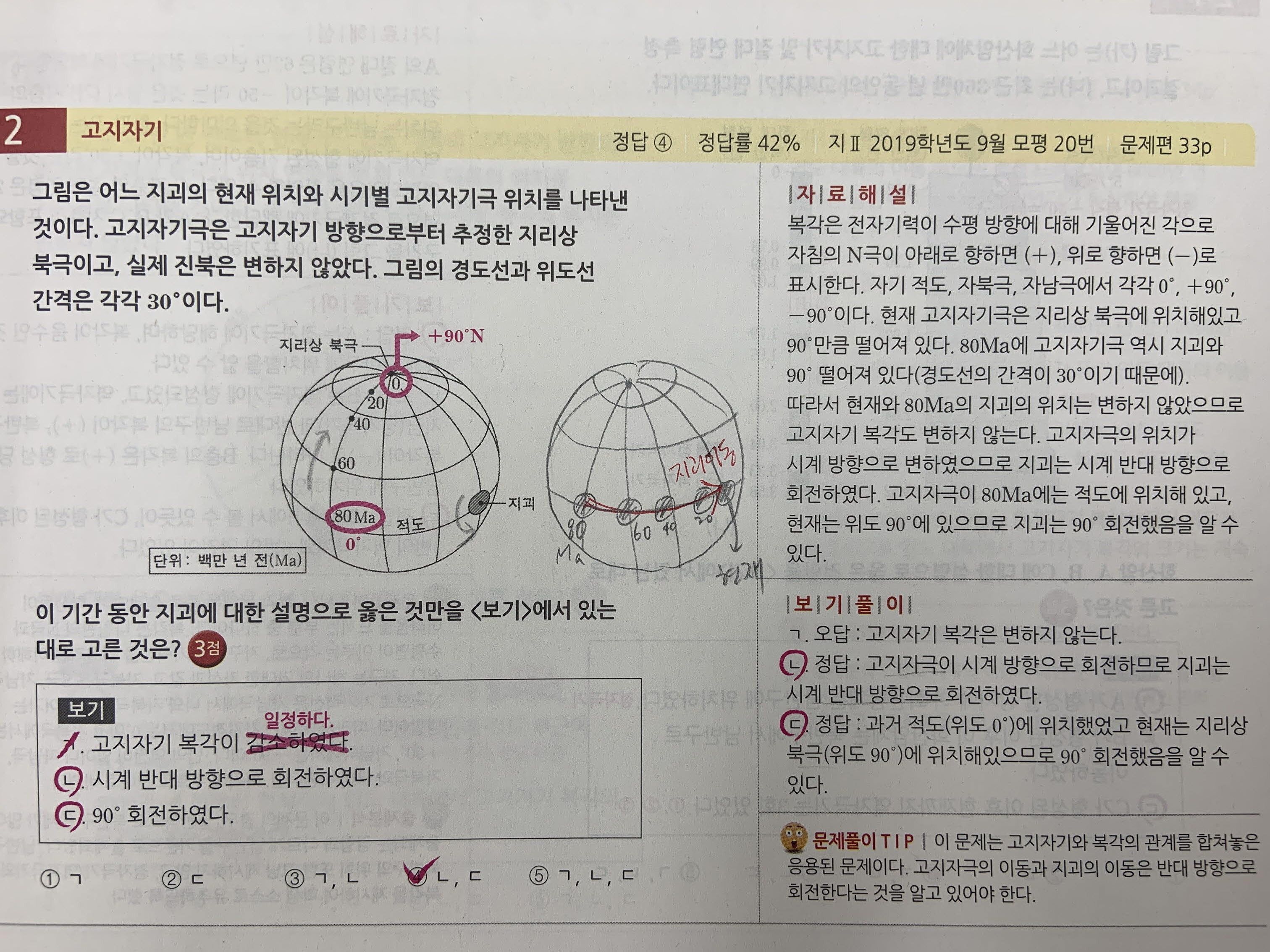 이 경우에도 지자기극과 지괴 사이의 거리는 90도로 계속 일정한거 같은데... 어디에서 제가 잘못 생각한 걸까요?