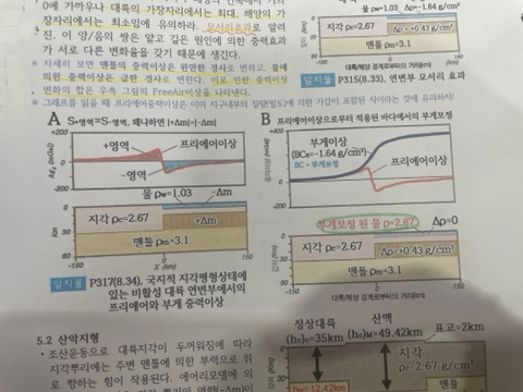 오른쪽 그림(B)에서 물의 밀도가 지각 밀도로 부게보정되면 부게이상이 (-)로 나와야하는거 아닌가요 ?ㅠㅠ