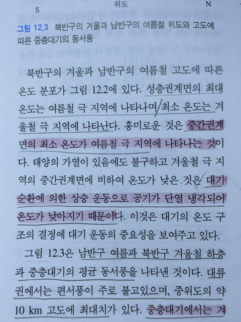 성층권에는 오존이 많고 중간권에는 거의희박해 여름반구 극은 백야로인해 성층권이 매우 뜨겁습니다(오존이 태양복사를 많이흡수해서 대기가열)
