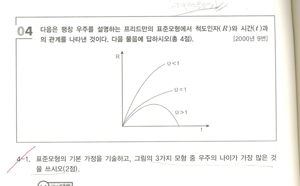 기출문제인데요~~~ 세가지 우주 모형중 우주의 나이가 가장 많은 것을 고르는건데~~~