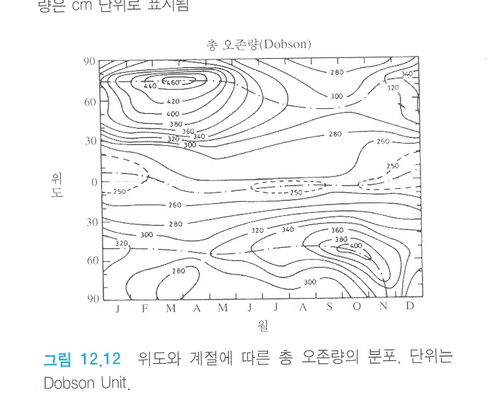 작성자스파르타 작성시간 09.11.01 반면 총 오존량이라는 것은 성층권 전역에서의 오존량을 의미하는 것인데(물론 대류권에서도 발생하는 오존의 90% 이상이 성층권에 있다고 하니 무시하겠습니다.), 여기서 봄에 고위도에서 많은 양을 나타내는 건 오존 순환 때문이 아닐까 싶습니다. 정리하자면, 총오존량은 위의 그래프처럼 오존순환에 의해 봄에 고위도에서 극대가 되나 극지방의 상층구름과 같은 일련의 작용에 의해 성층권 중 오존이 가장 밀집한 부분에는 봄에 오존홀이 생길수도 있다는 것입니다. 일단 생각뿐이라 책을 보고 더 고심해보아야 겠지만 이 문제의 키워드는 전술한 부분이 아닐까 싶습니다. 도움되셨길 바랍니다.^^ 17:37