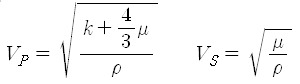 위 식에서 P파는 분자에 체적탄성계수 항이 하나 더 포함됨으로 인해서 S파보다 값이 더 크게 나온다고 알고 있는데요..