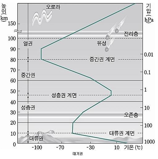 대기권의 층상 구조 그림을 보면
