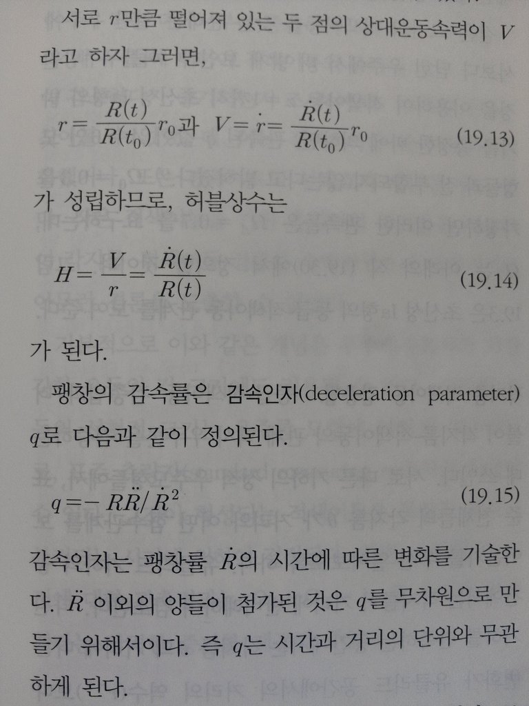 기본천문학 p.485의 우주론 내용인데요. 다른 책에서는 보지 못했던 r와 R 위의 점을 보고 당황했습니다.