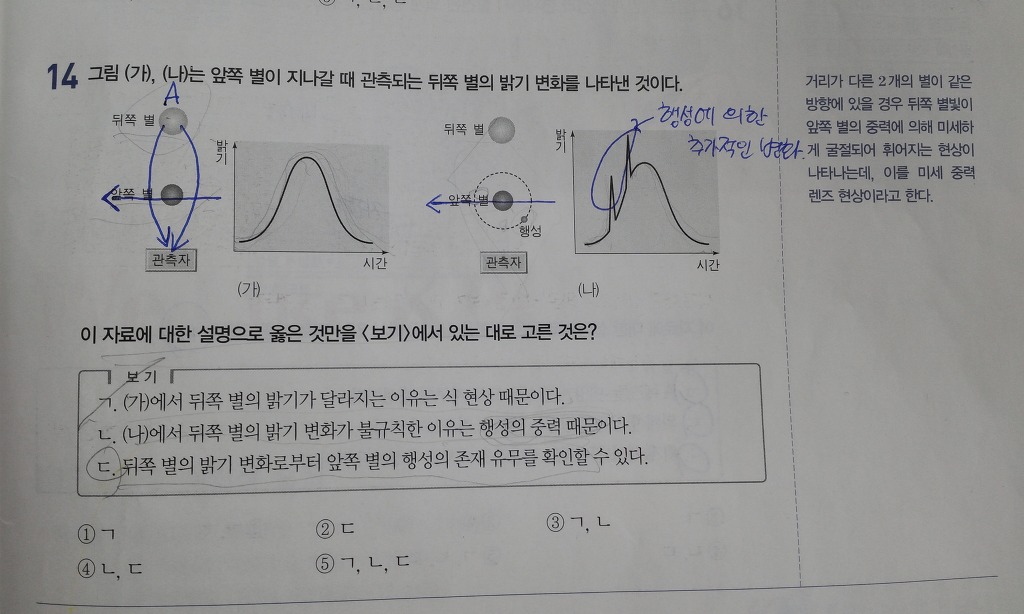 (나) 그림에서 행성에 의한 추가적인 변화(파란색으로 동그라미 쳐놓은 부분) 양상을 설명할 때,