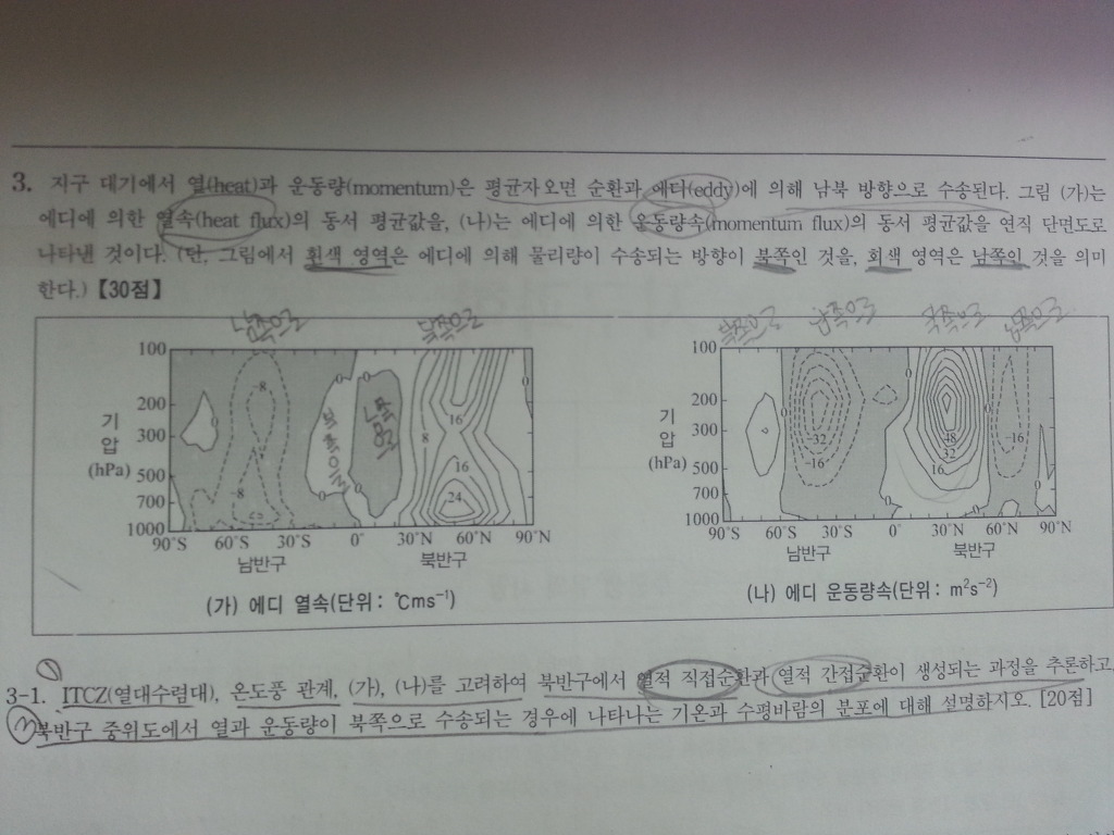문제에서 "중위도에서 열과 운동량이 북쪽으로 수송되는 경우에 나타나는 기온과 수평바람을 쓰시오" 이거 답이 어떻게 되나요? 그냥 단순하게 생각할때 수평바람은 서풍일것 같고 열과 운동량이 북쪽으로 수송되지만 순복사량은 0이니깐 기온은 일정하다 라는 결론이 나오는데 확실히 잘 모르겠어요~~