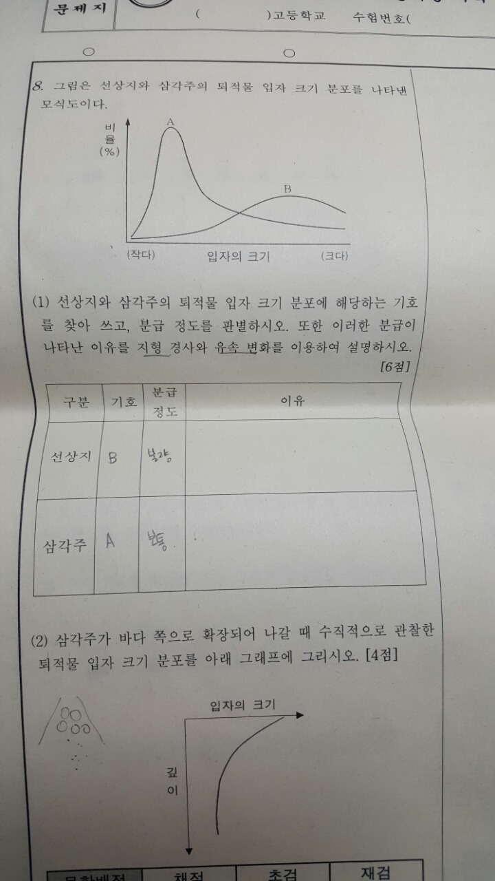 그리고 밑에 그래프는 바다쪽으로 갈수록 세립질이니깐 저렇게 그리면될까요?