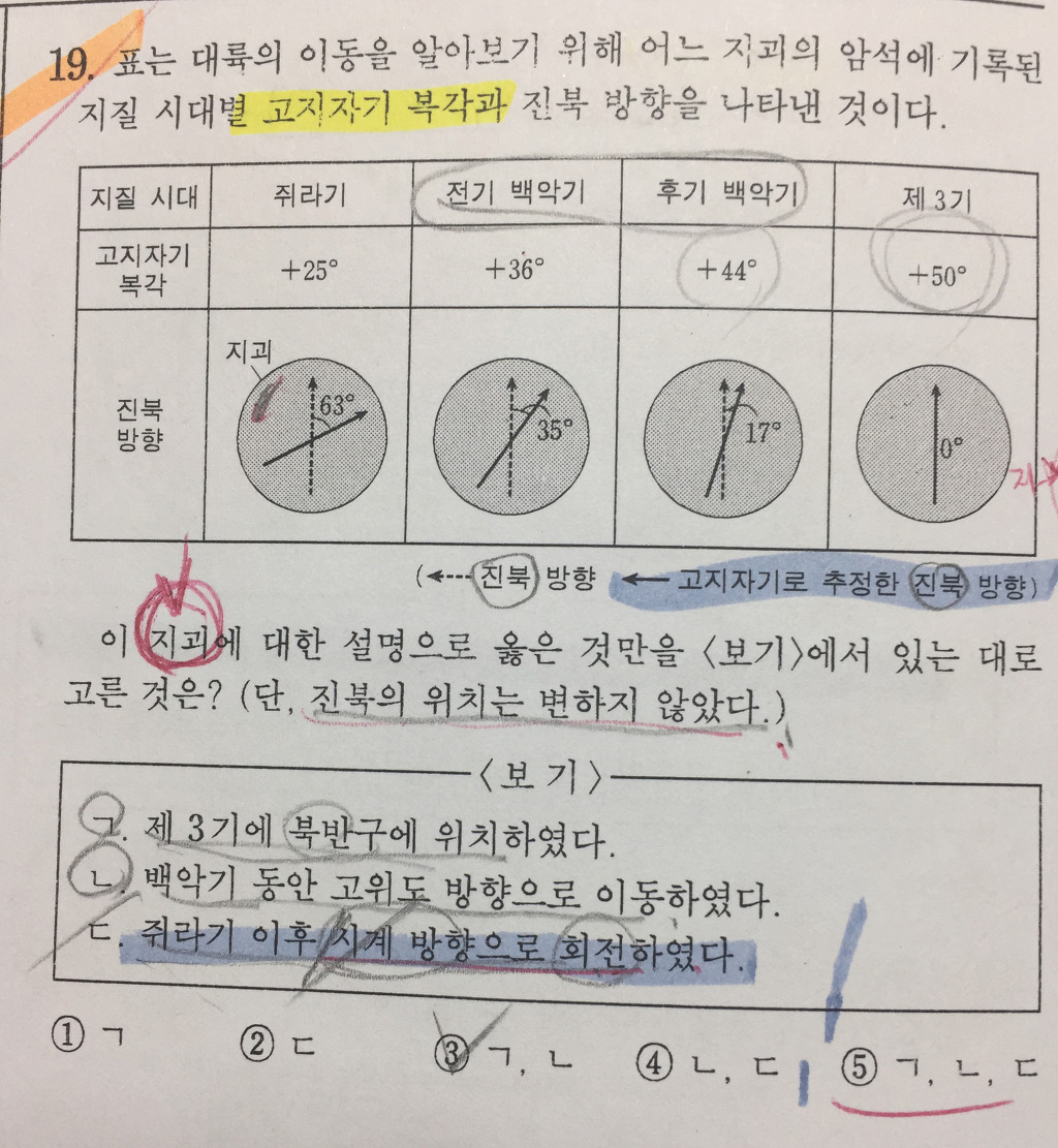 지괴에 기록된 진북방향이 쥐라기에비해 백악기로갈수록 반시계방향으로 회전하고있으니 사실은 지괴가 시계방향으로 회전했다는 이야기가 되겠네요