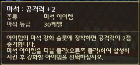 - 장비에 마석 사용 등급이 설정되어 있으며, 마석 사용 등급보다 높은 마석은 사용할 수 없다.