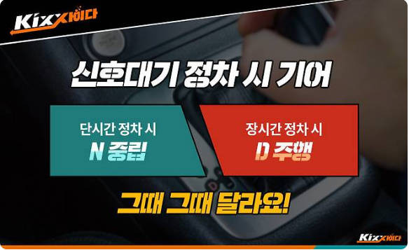 • 1분 미만 짧은 신호 대기: D단을 유지하며 브레이크를 밟는 것이 변속기 보호 및 신속한 출발에 유리하다.
