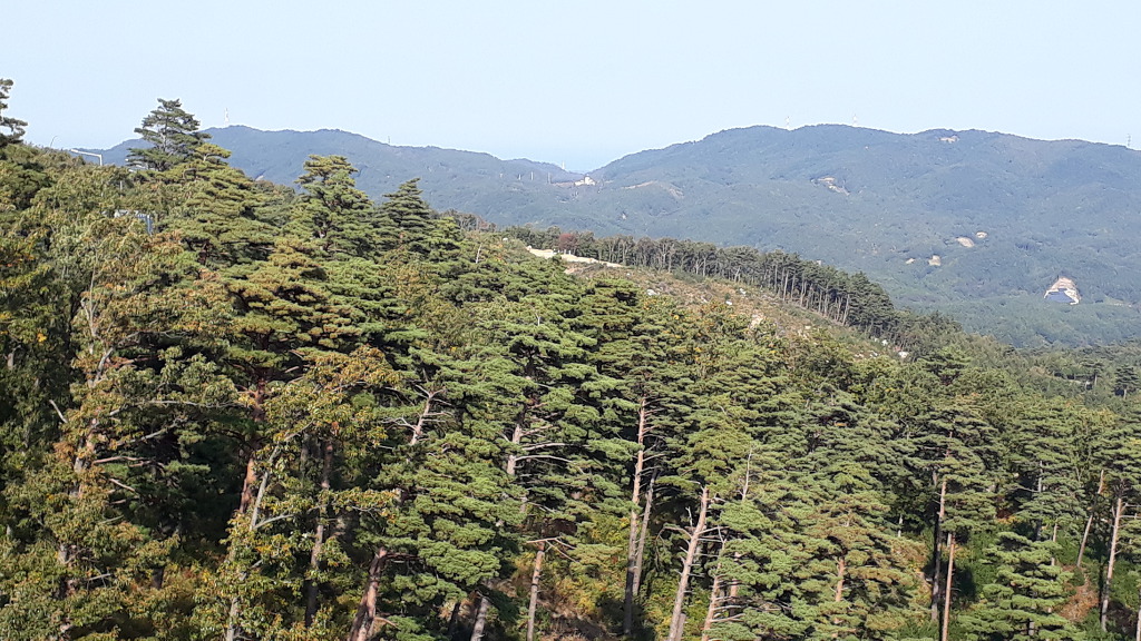 정상 전망대에서 저 멀리 정동진역 해변과 강릉항 끝의 해변의 풍경은 환상적입니다.