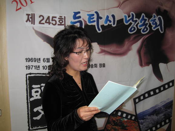 " 이젠 꿈같은 행복도 추억으로 묻혀가고"를 낭독하고 있다.