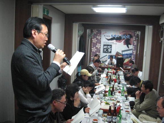 정선에서 달려 온 윤종영 시인이 '치사한 싸움' 을 낭독.