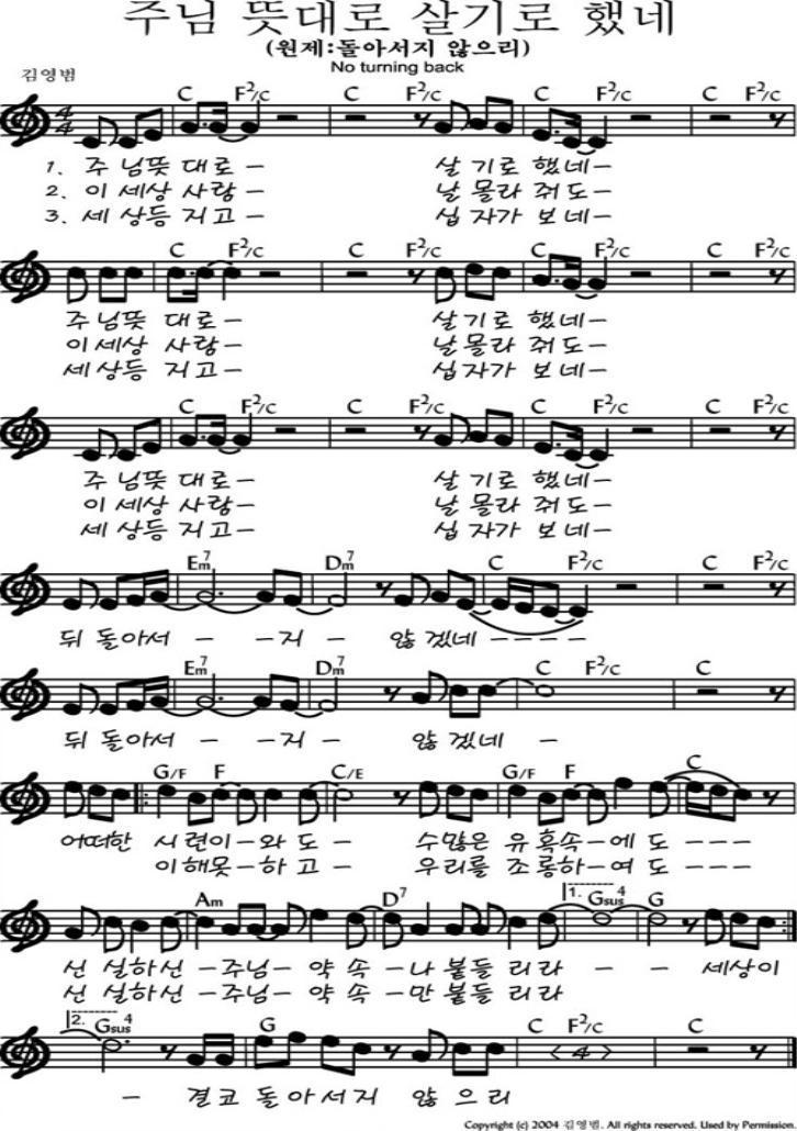 주님 뜻대로 살기로 했네 뒤돌아 서지 않겠네