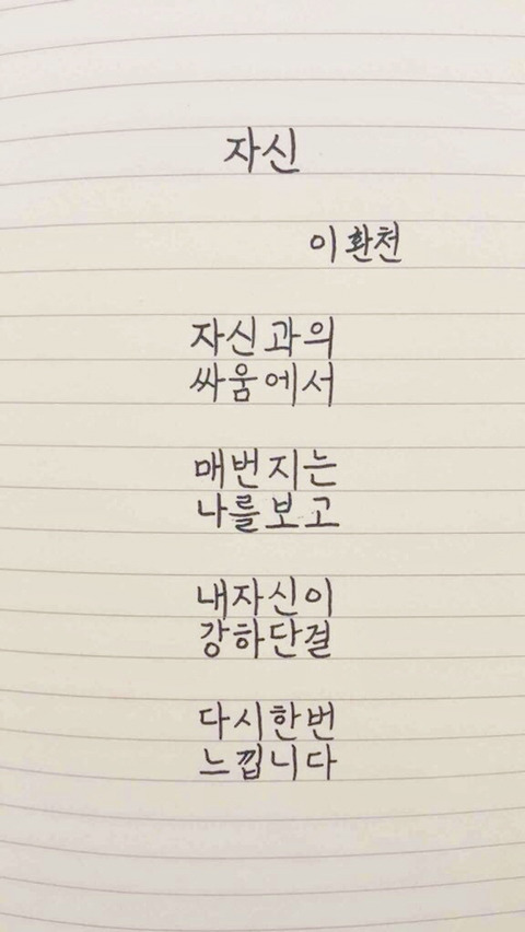 [재미있는 시] 자신- 이환천 작성자랑데뷰|작성시간18.04.21|조회수873 목록 댓글 36 글자크기 작게가 글자크기 크게가 이환천 이라는 분은 재미있는 시를 많이 썼어요~그냥 읽으면 재미있는데~곱씹으며 자꾸 읽으니 막 찔려요~><;;; 다음검색 현재 게시글 추가 기능 열기 북마크 공유하기 신고 센터로 신고 댓글 댓글 36 댓글쓰기 답글쓰기 댓글 리스트 답댓글 작성자랑데뷰 작성자 본인 여부 작성자 | 작성시간 18.04.25 힘내요~~!! 작성자물보라 | 작성시간 18.04.26 그러네요.... 내 자신이 정말 강한 사람이라는 걸.... 깨닫게 되었네요... ㅠㅠㅠ 답댓글 작성자뷰티살롱 작성자 본인 여부 작성자 | 작성시간 18.04.26 작성자긍정생각 | 작성시간 18.05.01 내 자신이 강하단걸 저도 그런가봐요 ㅋㅋㅋ 답댓글 작성자뷰티살롱 작성자 본인 여부 작성자 | 작성시간 18.05.02 댓글 전체보기