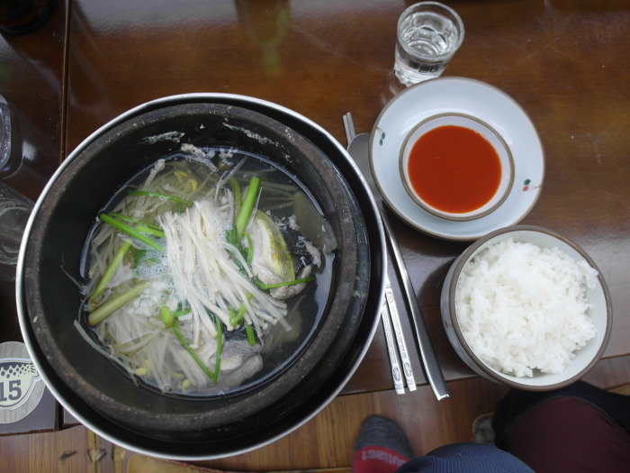 바닷가 가지 갔다 되돌아 나와 일광역 입구의 대복집에서 하산주로 하루의 피로를 풉니다..