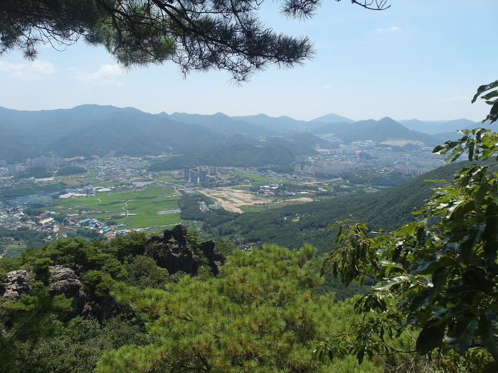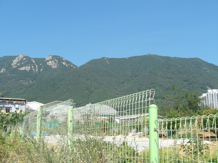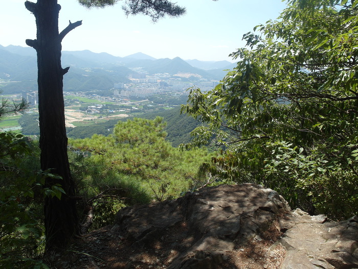 가야 할 계곡 방향... 암봉 오른편 푹 꺼진곳~~..