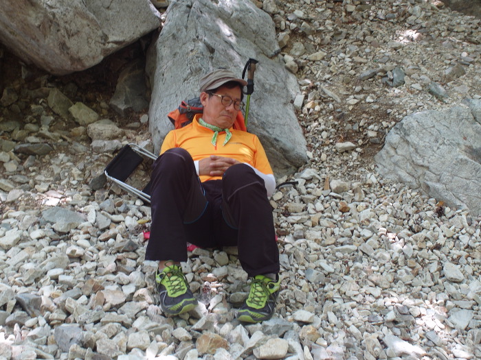 오늘 너무 더우니 계곡물에서 한참 쉬고 되돌아 오자고 하네요~~....