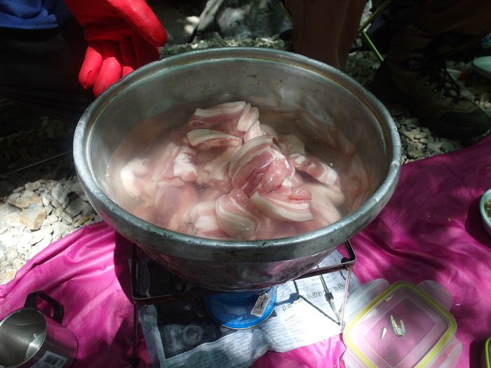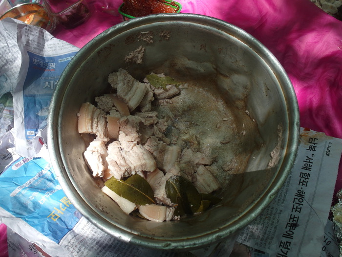 추가로 삶은 메밀국수 씨는 사이 삼겹살 수육 차례...