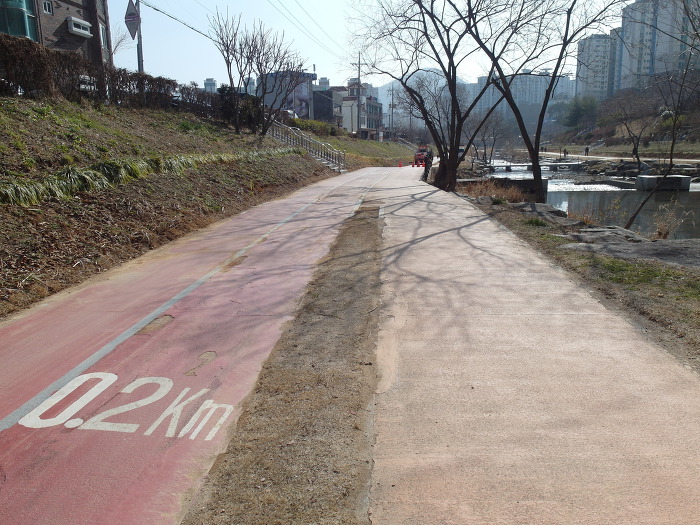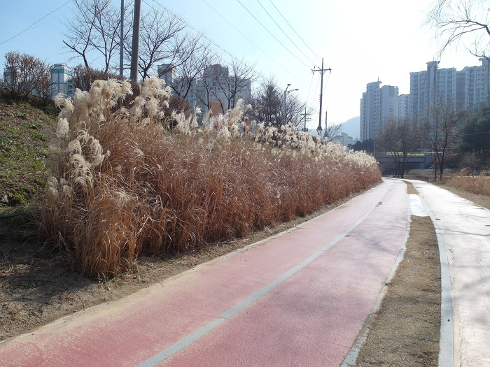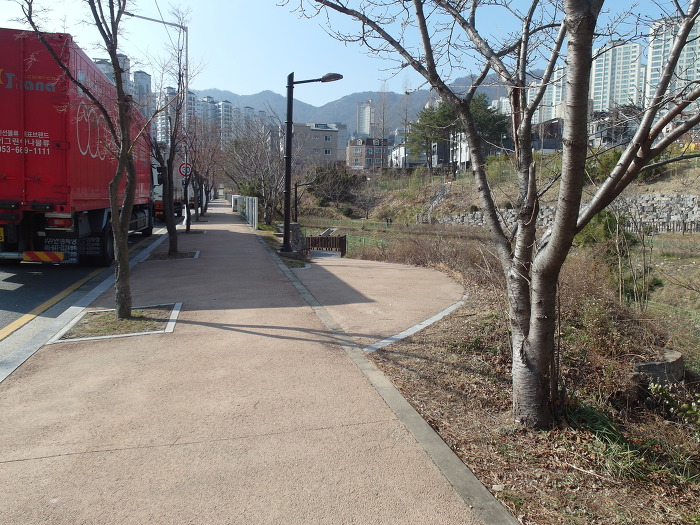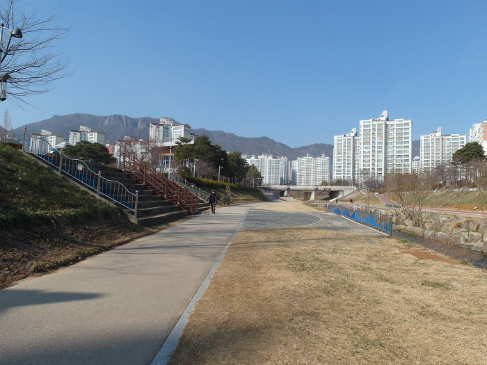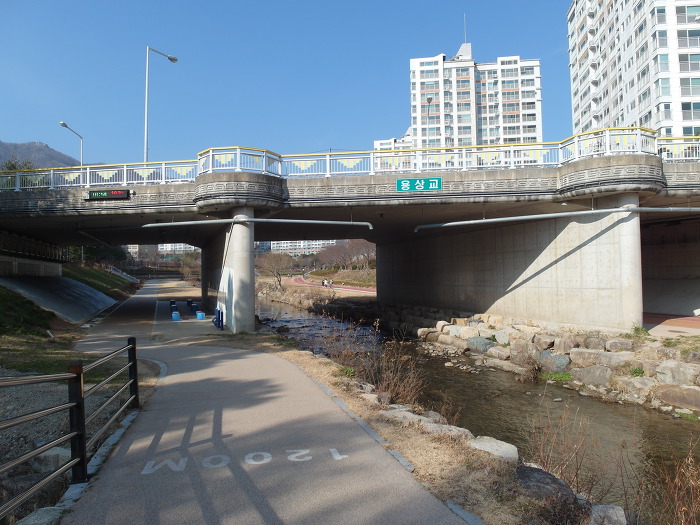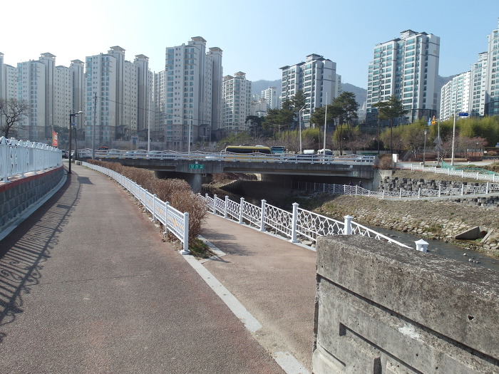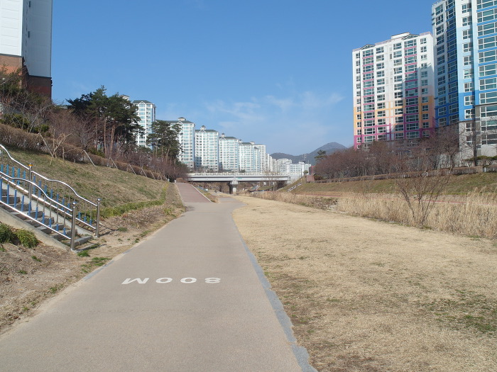 아파트 지하를 나오면 바로 좌광천과 연결 됩니다..