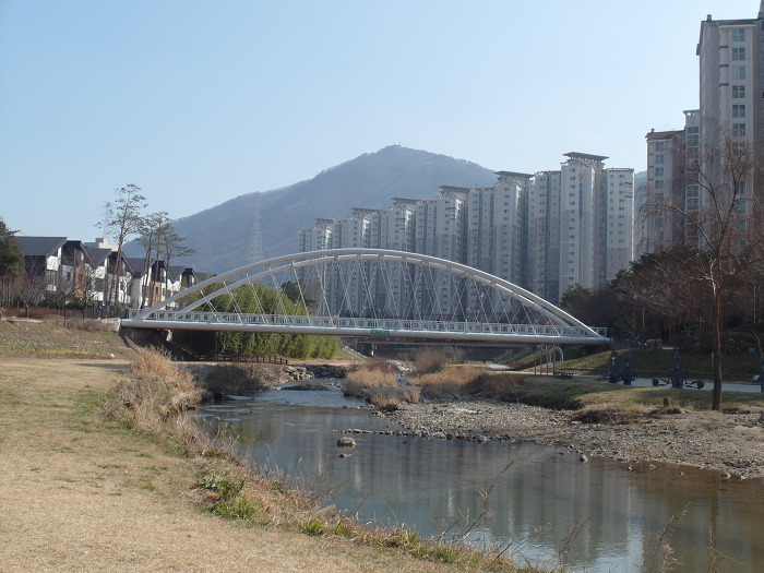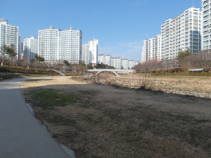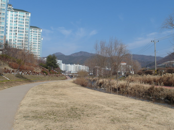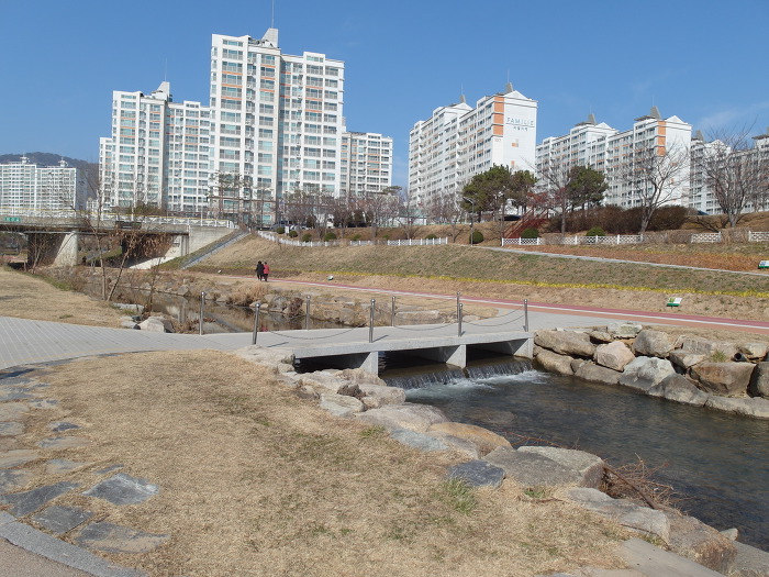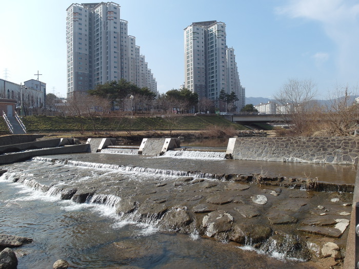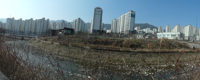 용상교를 지나 상류로 갈 수록 성냥갑 아파트만 즐비하게 보입니다..