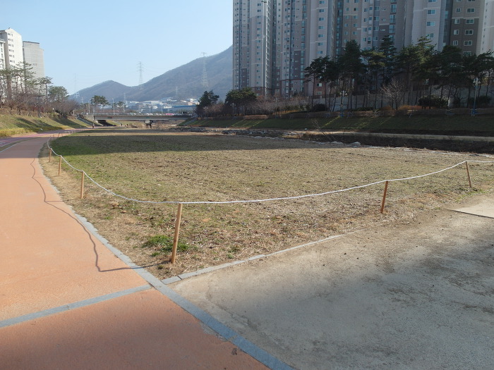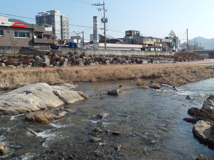 작년 많은 비로 인해 세차례 인가 좌광천이 범람하여 흙이 많이 쓸려 갔답니다..