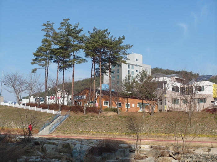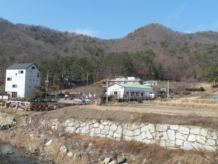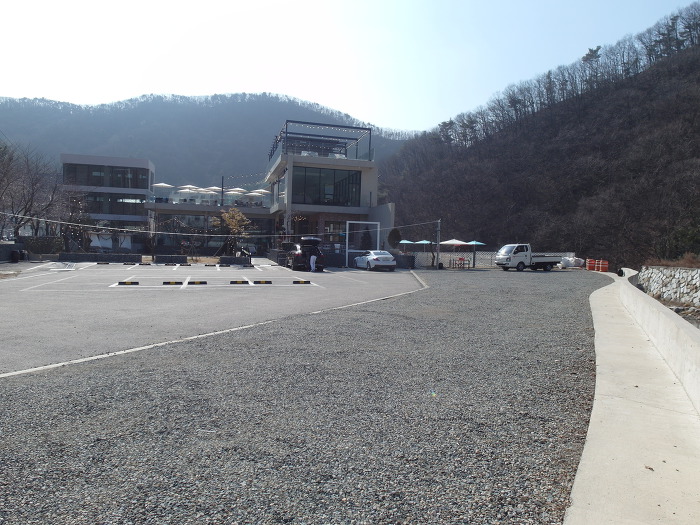 오른편 산 밑으로 카페와 음식점이 있습니다..