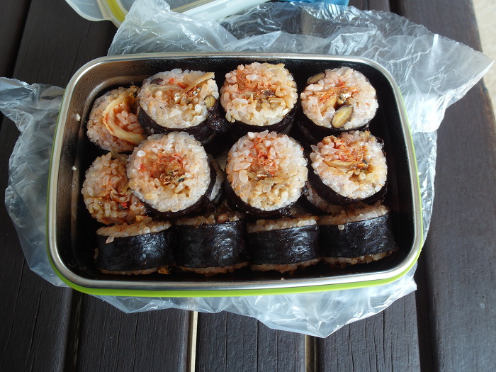 달음교 건너가 다리 밑의 쉼터에서 점심식사를 합니다..