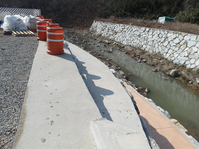 잔디가 많이 쓸려 내려가 아예 시멘트로 고정해 놓았네요~~..