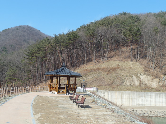 길 다라 다리 밑을 통과해 올라 오면 병산저수지가 지척입니다..위에 정자가 보이네요..