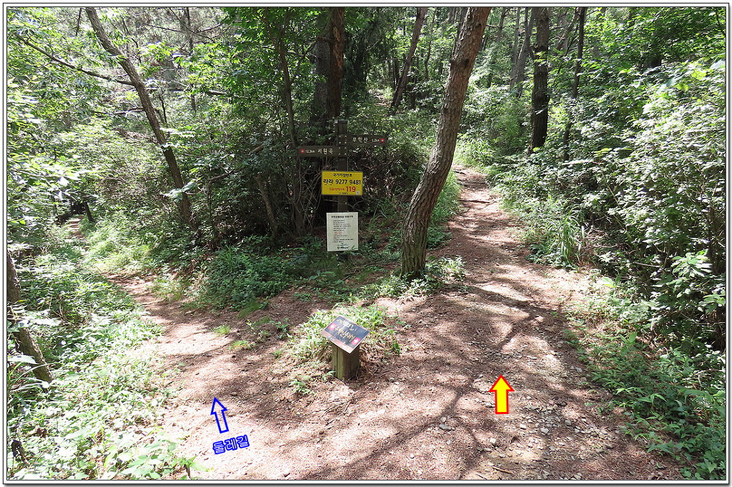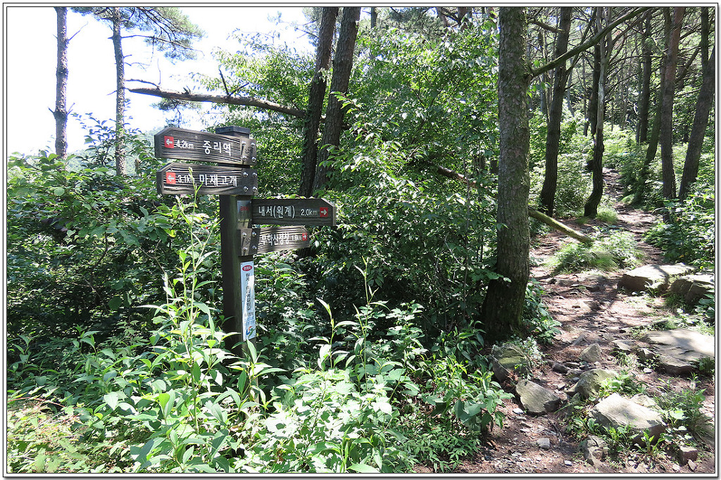 오른쪽으로 가면 개나리동산이겠지만 왼쪽으로 돌아가 중봉 갈림길에서 다시 산행을 이어간다