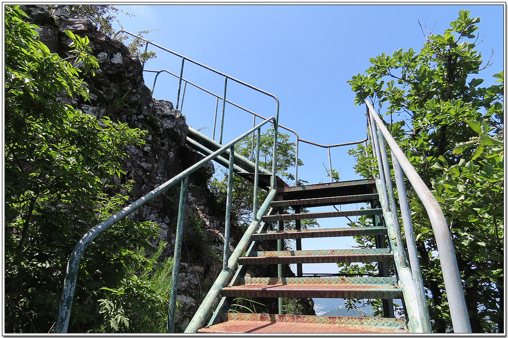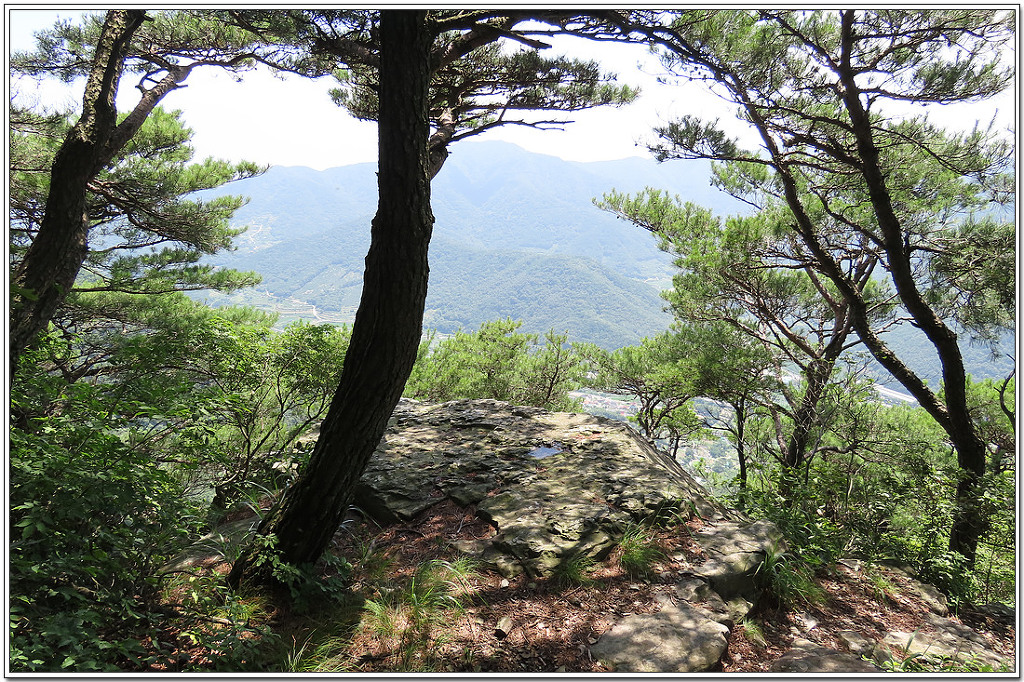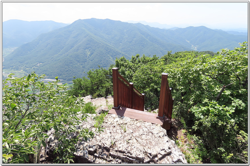 서마지기 쪽으로 냬려가는 계단길 너머로 작대산과 천주산 등이 보이고