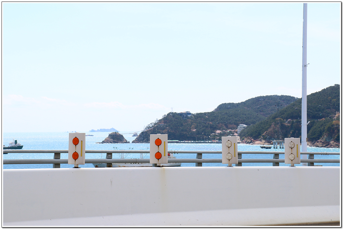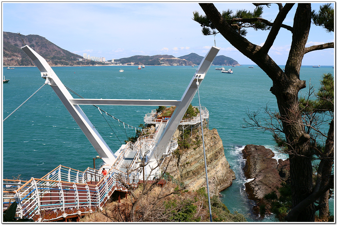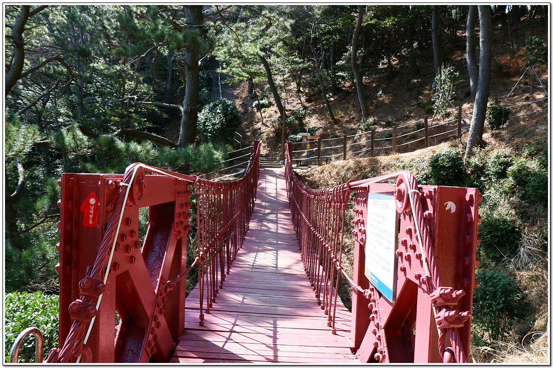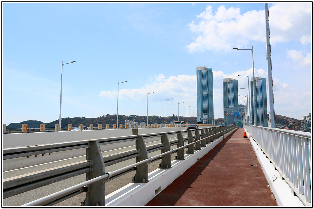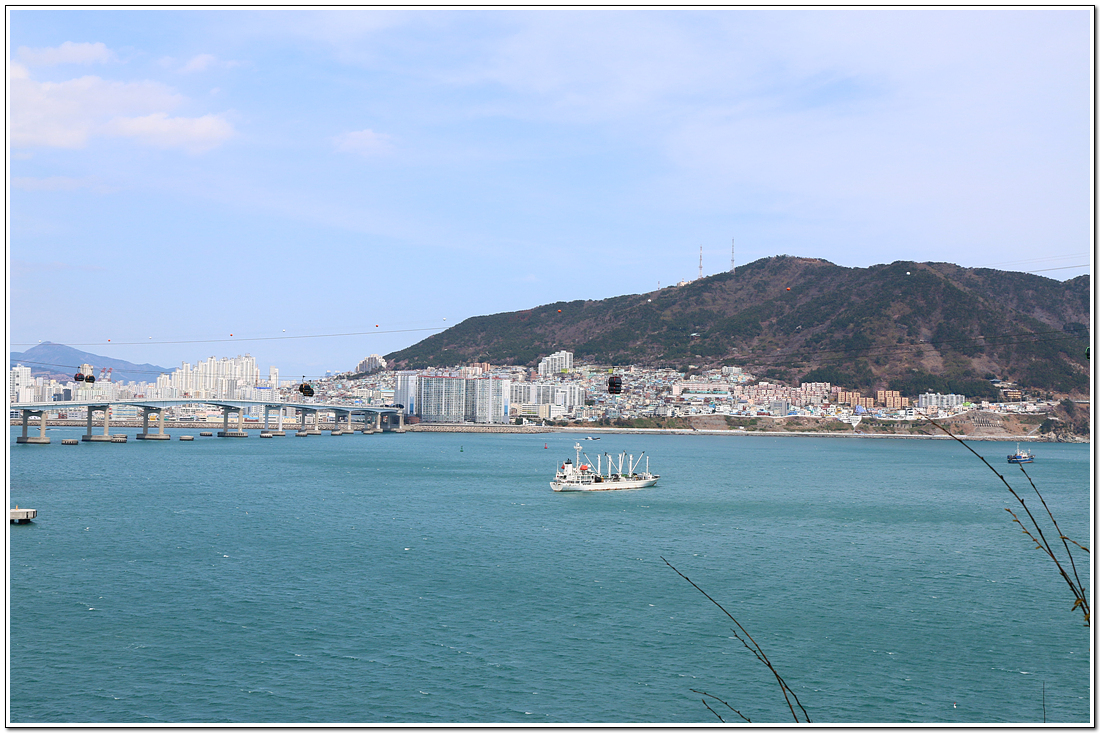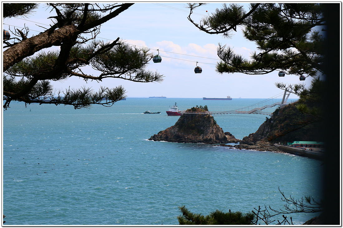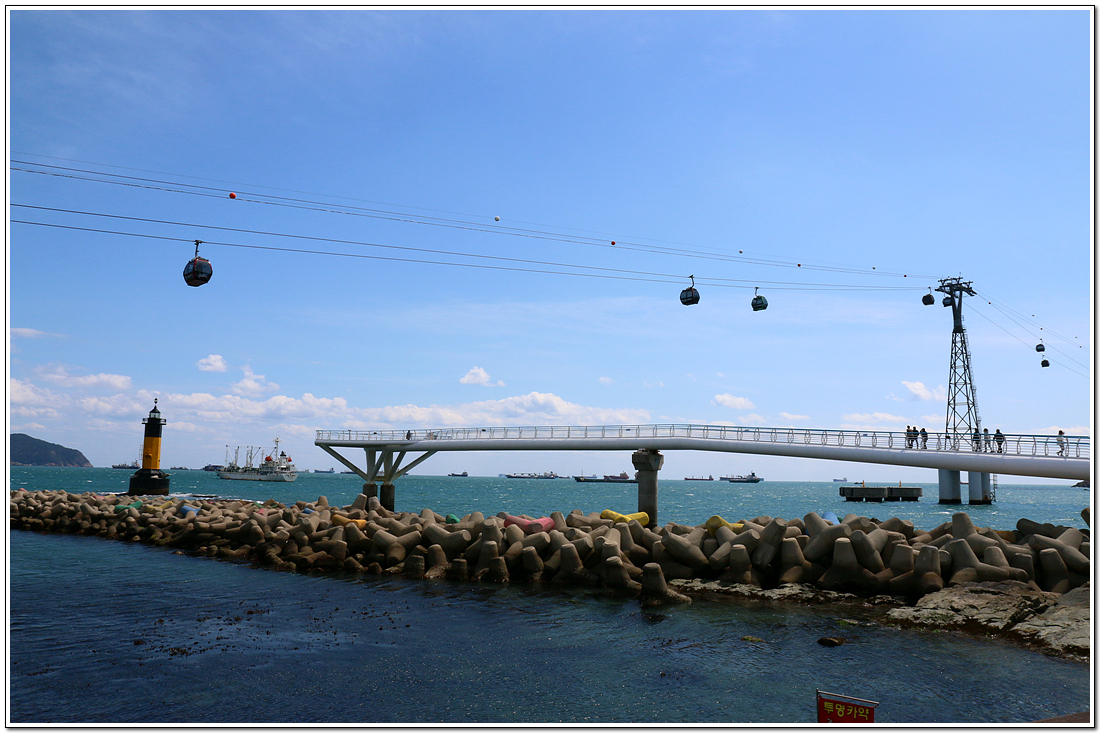 왼쪽으로 시선을 돌리면 동섬과 암남공원을 연결한 용궁구름다리가 보인다