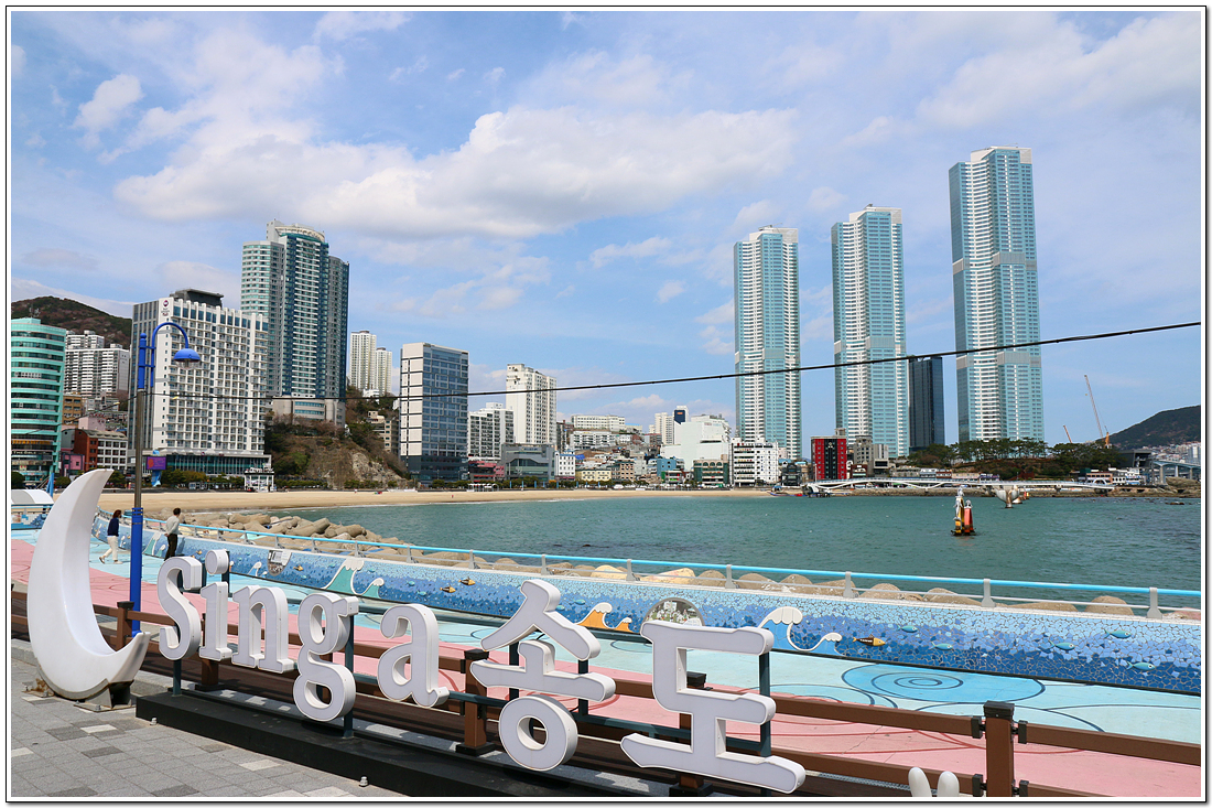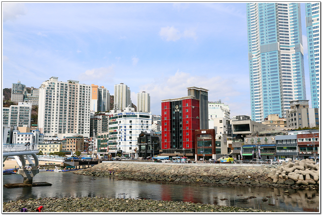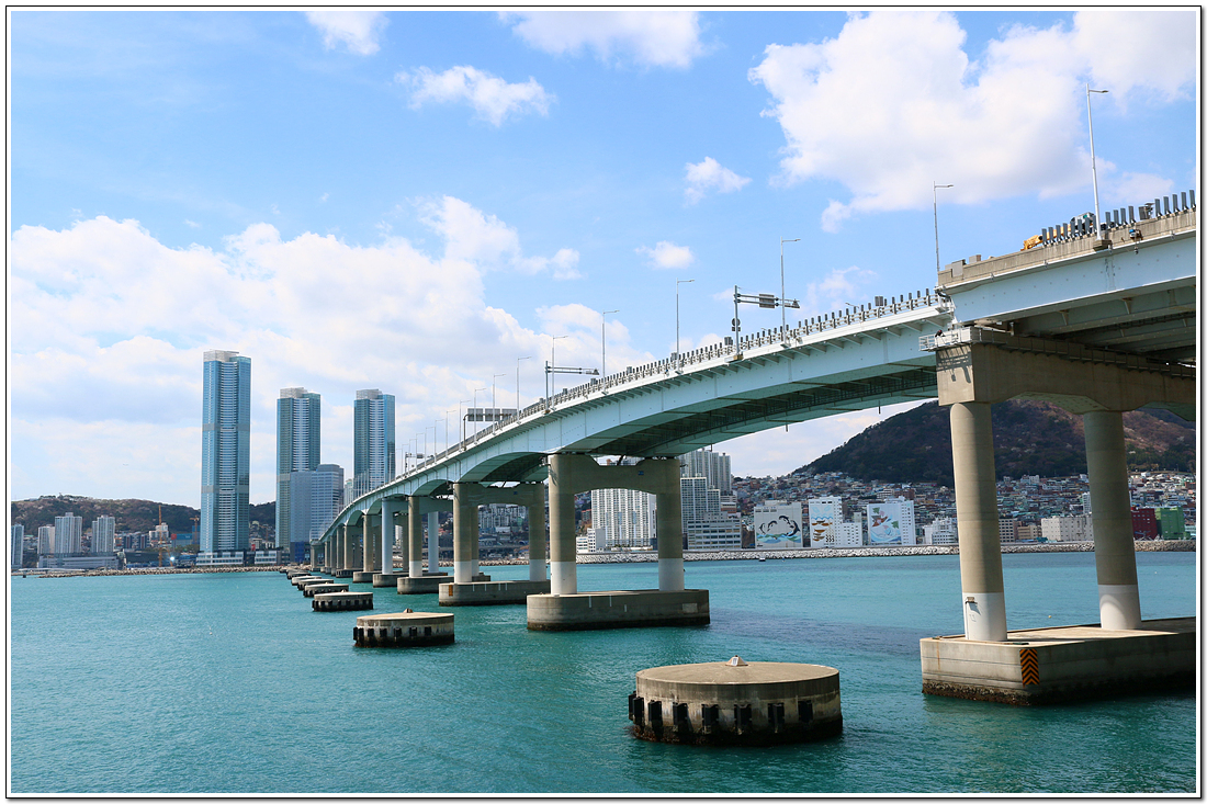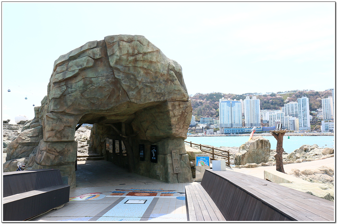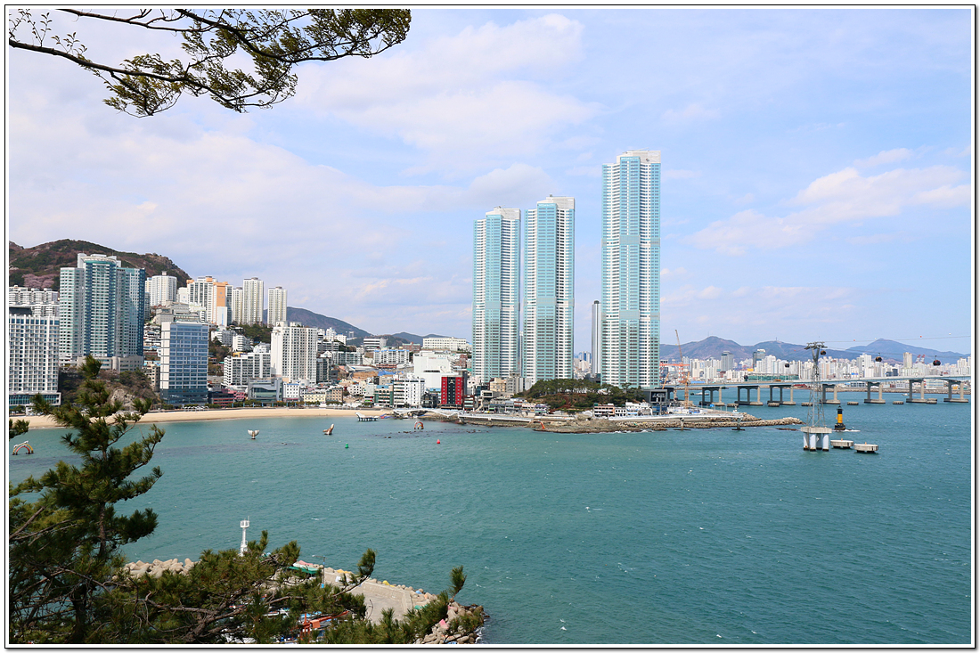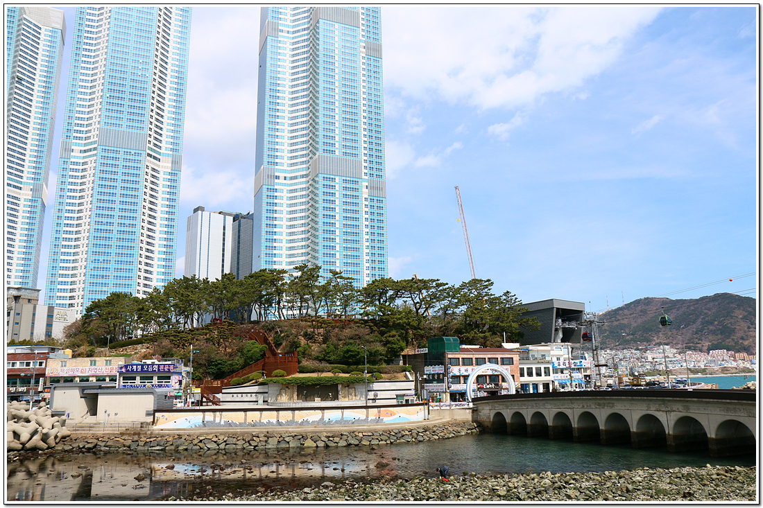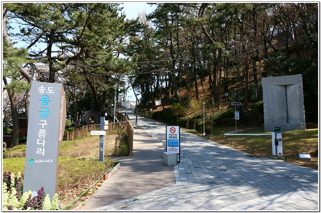 왼쪽으로 시선을 돌리면 동섬과 암남공원을 연결한 용궁구름다리가 보인다