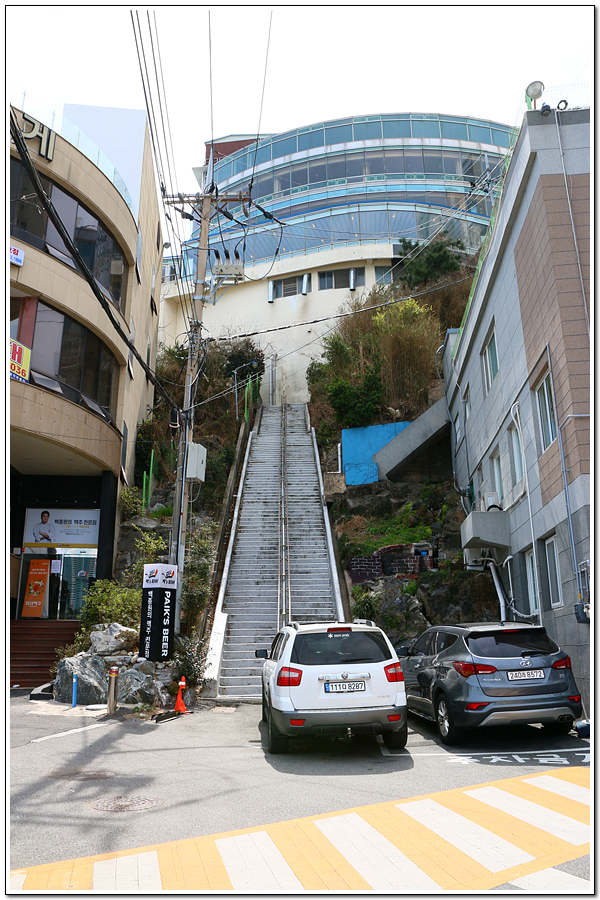 긴 계단길을 힘들게 오르면 차도가 나온다