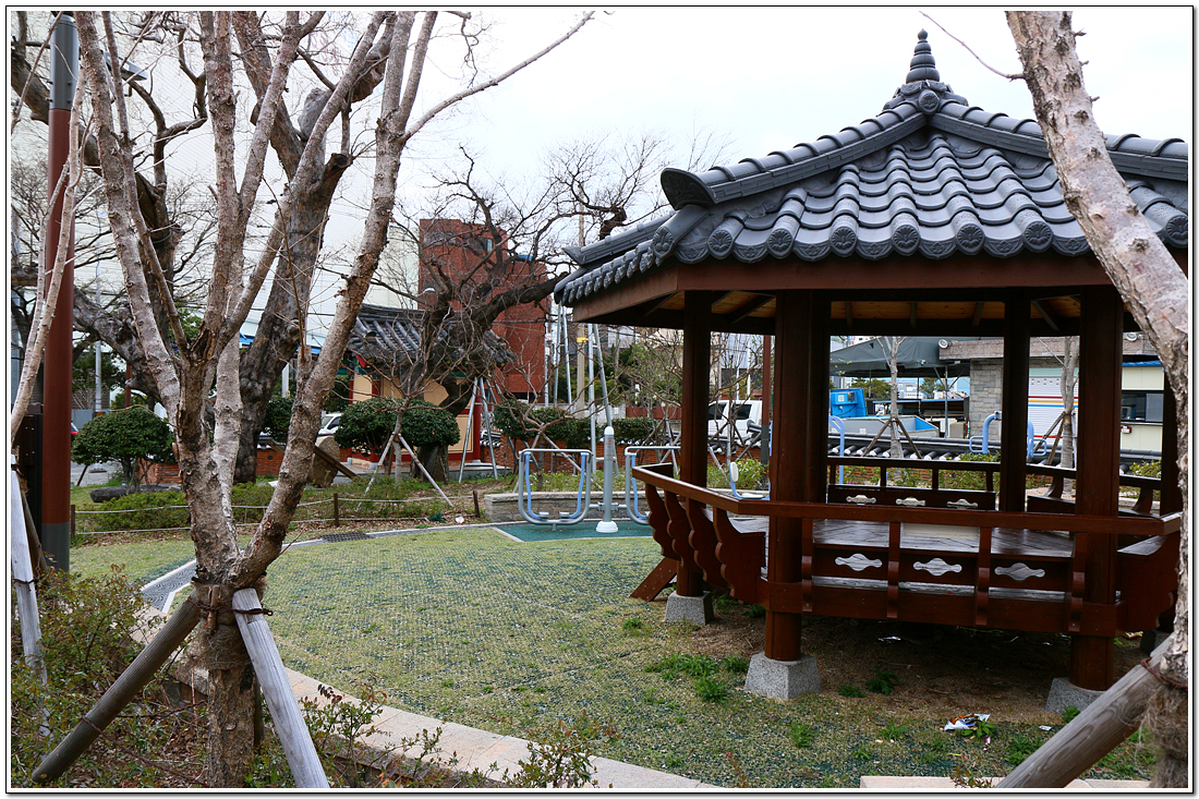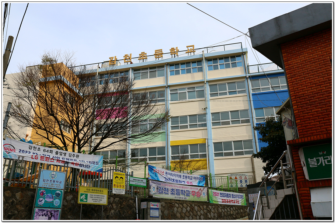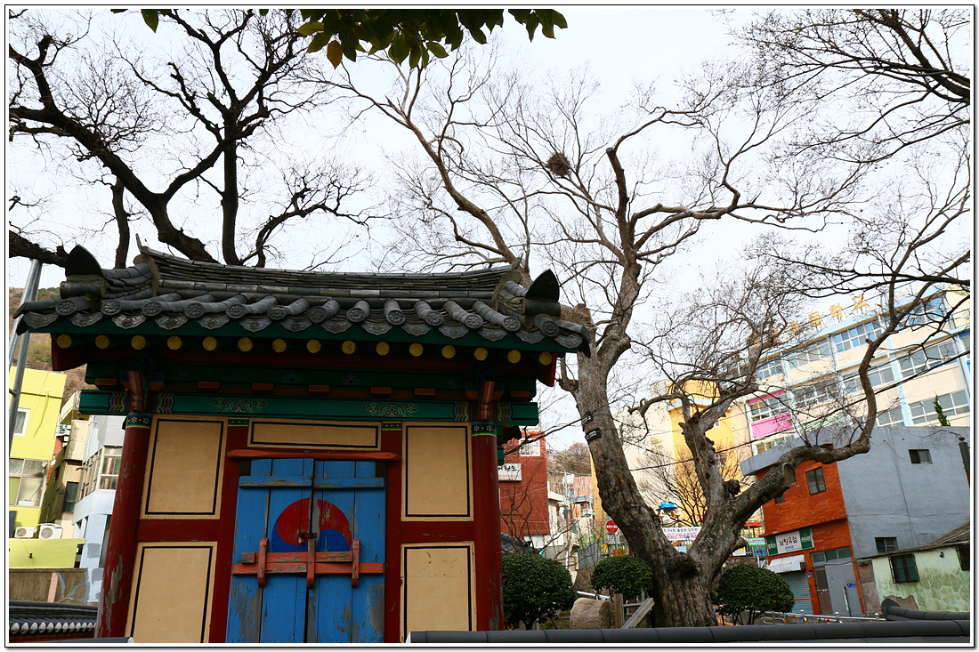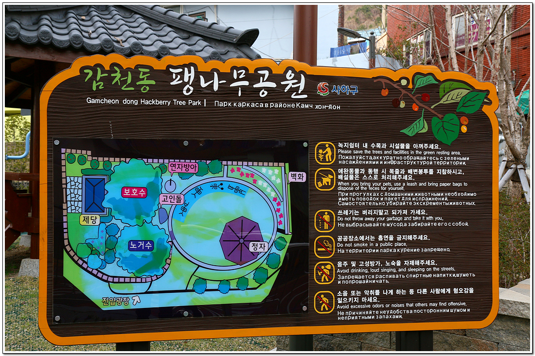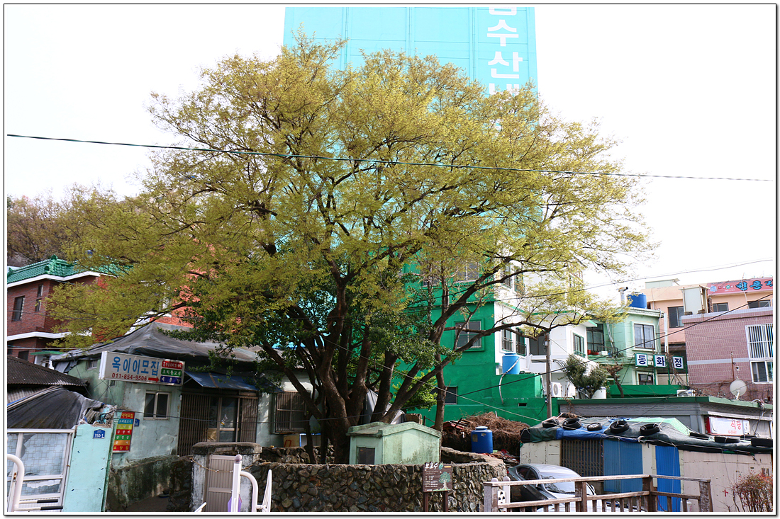 감천초등학교 앞의 감천동 팽나무공원을 지난다