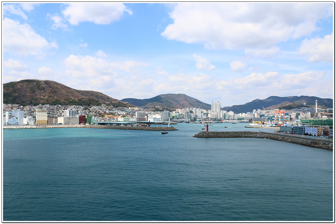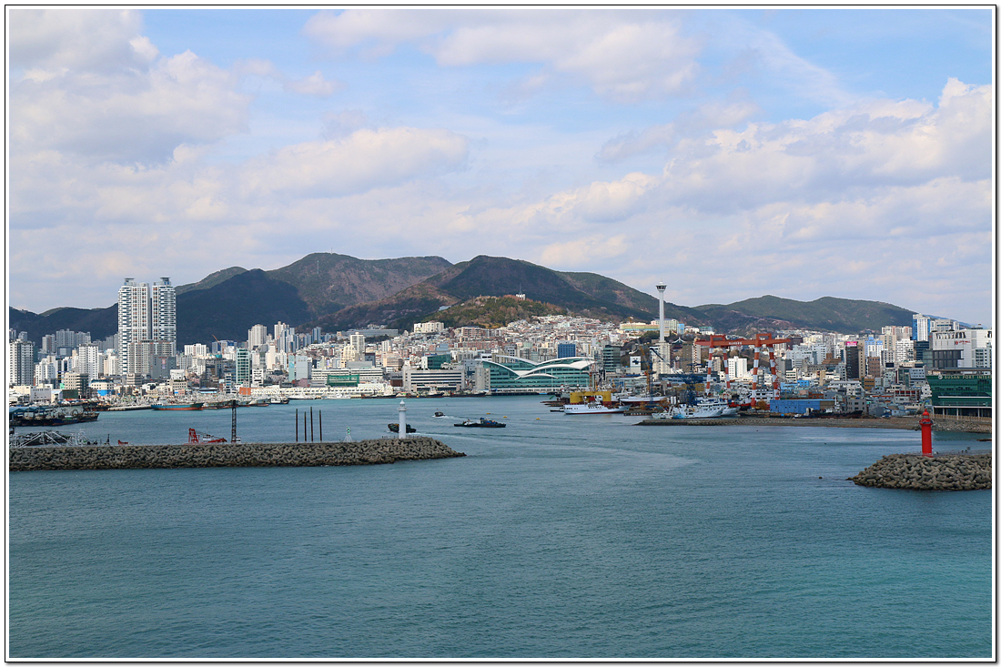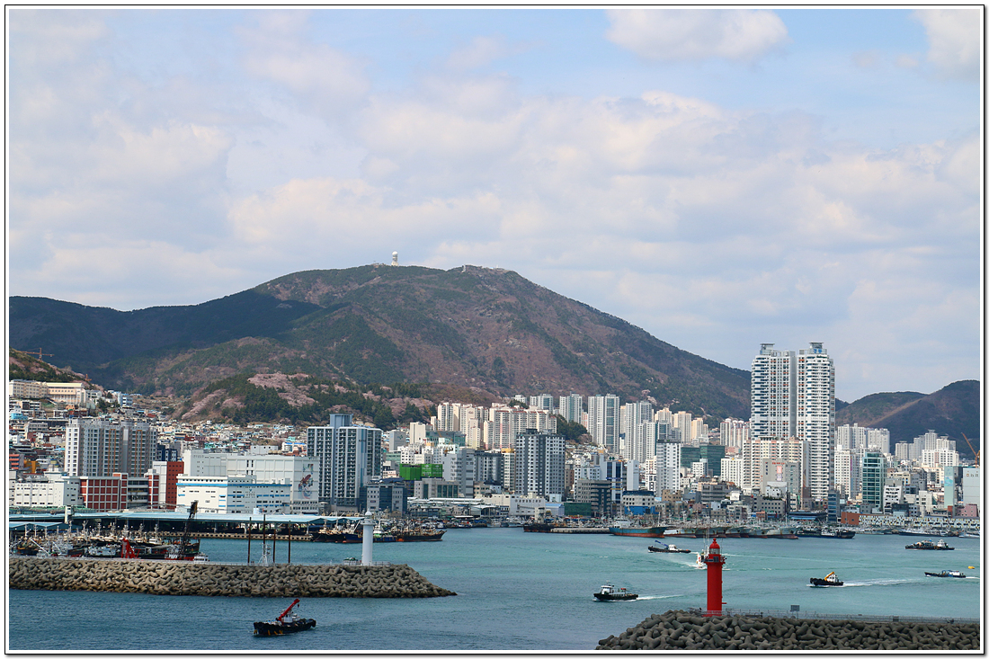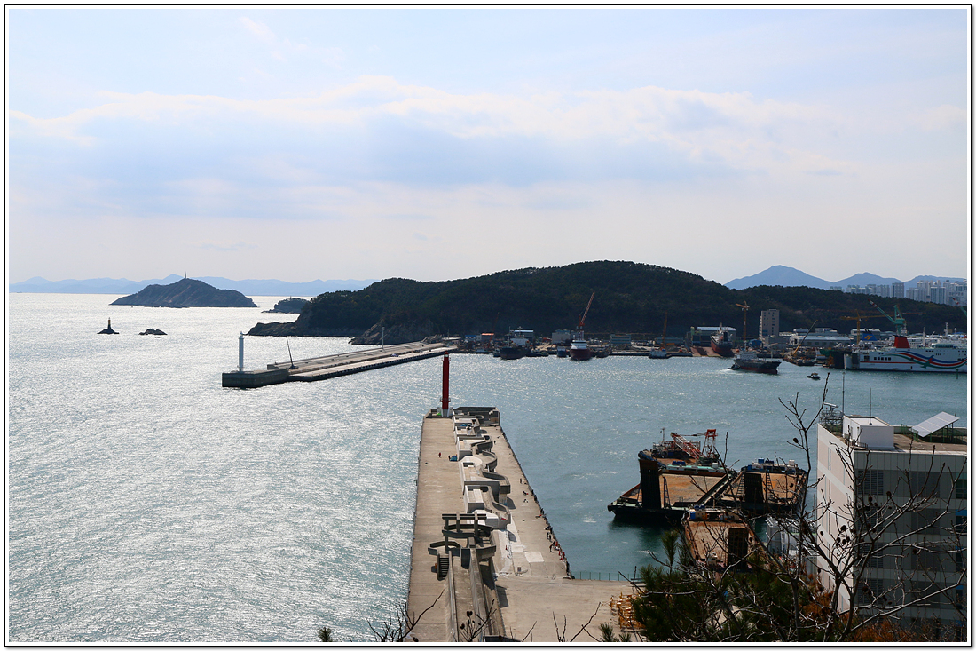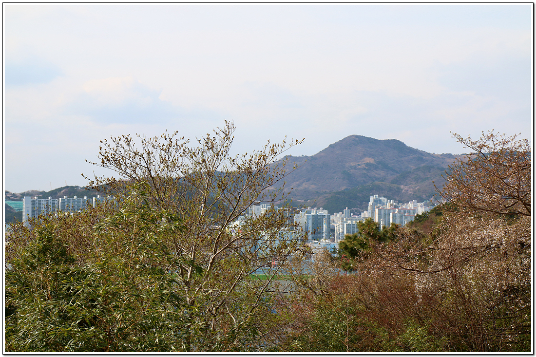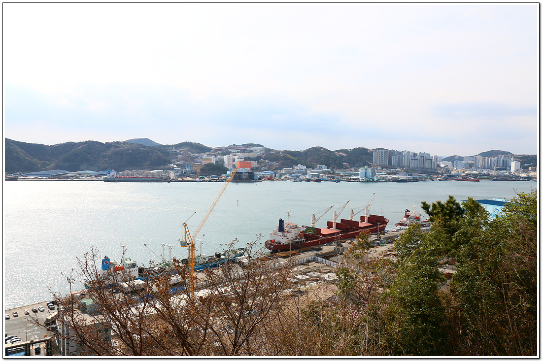 내항 쪽으로 고개를 돌리면 천마산에서부터 수정산까지 긴 산줄기가 눈에 들어온다
