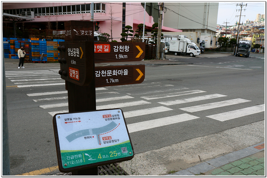 드디어 감천항 중앙부두가 나오고, 횡단보도를 건넌다