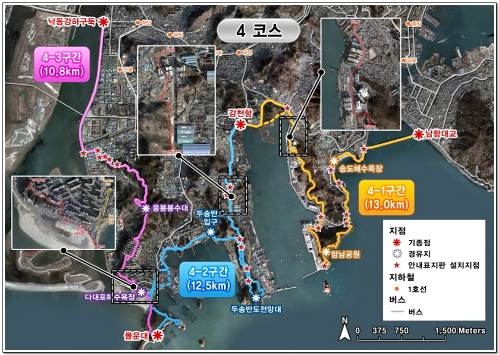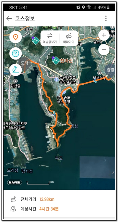 사하구 예비군훈련장과 해동고등학교를 거쳐 감천고개로 내려온 뒤