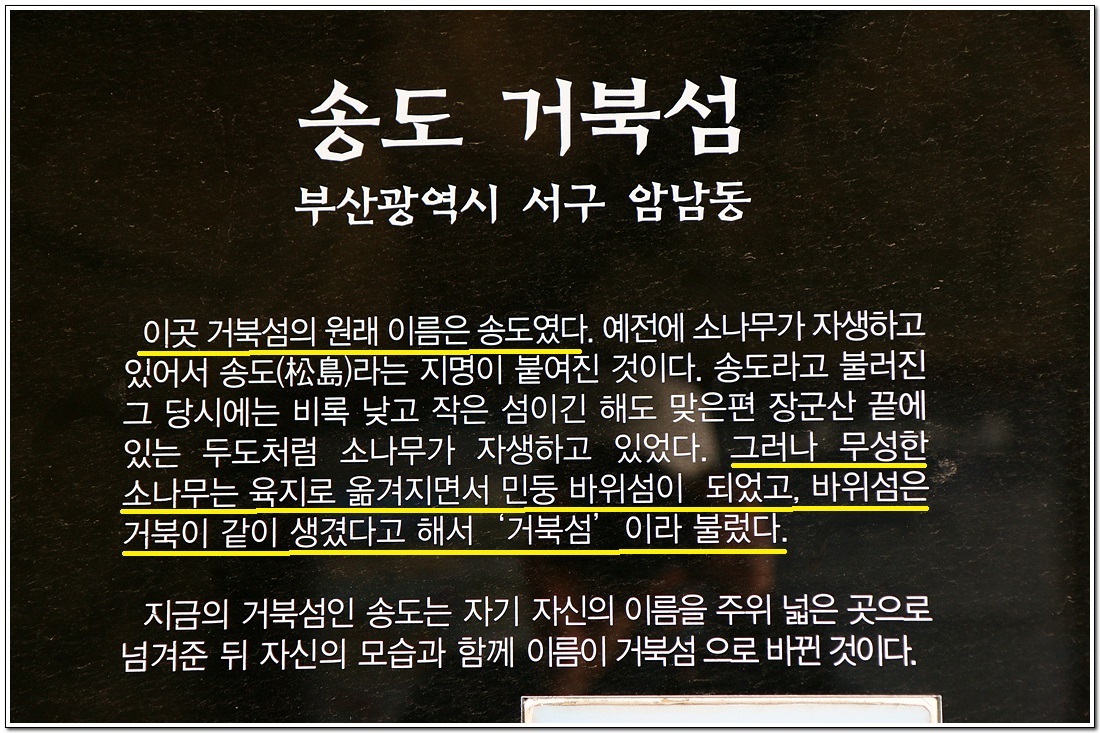 이 거북섬의 원래 이름이 송도(松島)였는데 지금은 이 일대를 통털어 송도라고 부른다