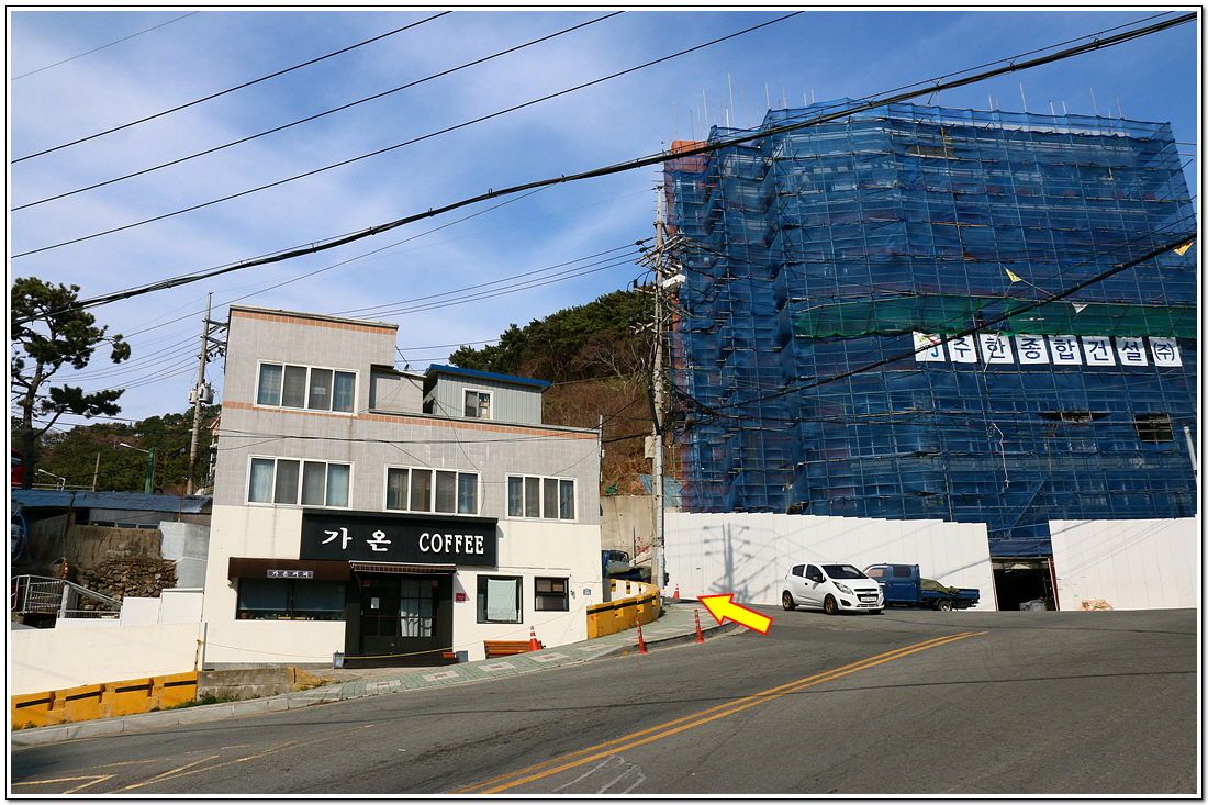 갈맷길은 모지포(毛知浦) 마을 입구의 가온 카페 뒤로 돌아간다