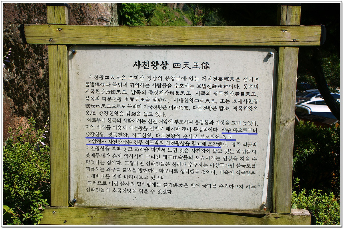 서암정사의 사천왕상은 경주 석굴암의 사천왕상을 참고하여 조각하였다