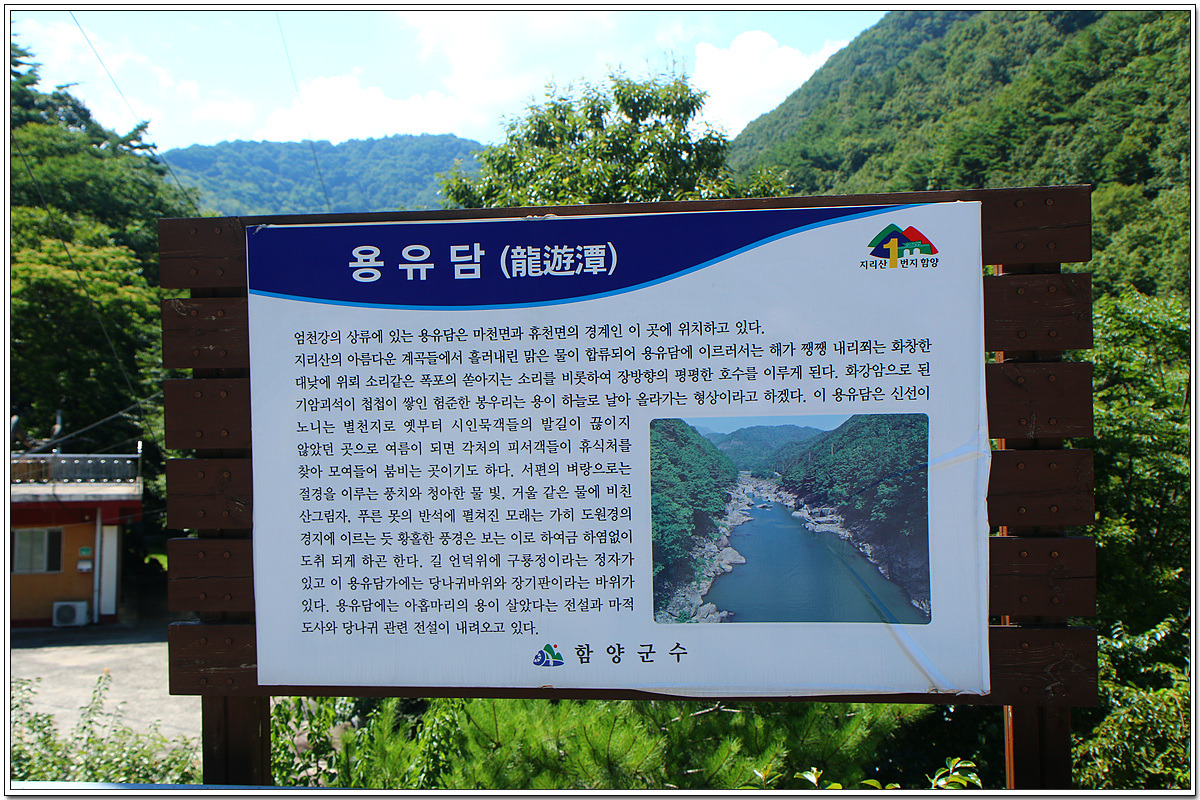 함양군 휴천면 송전리 엄천강 유역의 용유담(龍遊潭)은 마천면과 휴천면의 경계지점에 있다